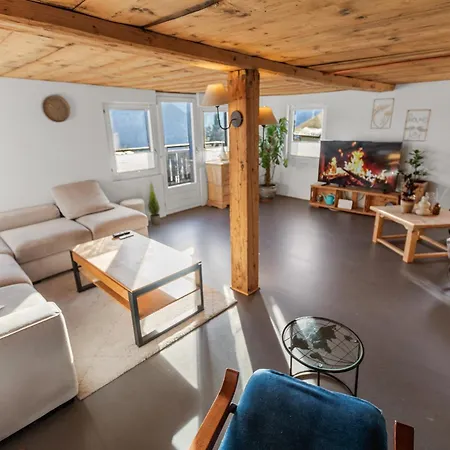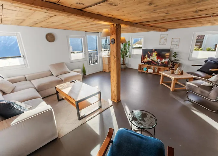 Η Historic Charming House 10 Min From Crans-Montana Βίλα διαθέτει βεράντα με θέα στο βουνό και απέχει 28 λεπτά οδικώς από το αεροδρόμιο Σιόν.